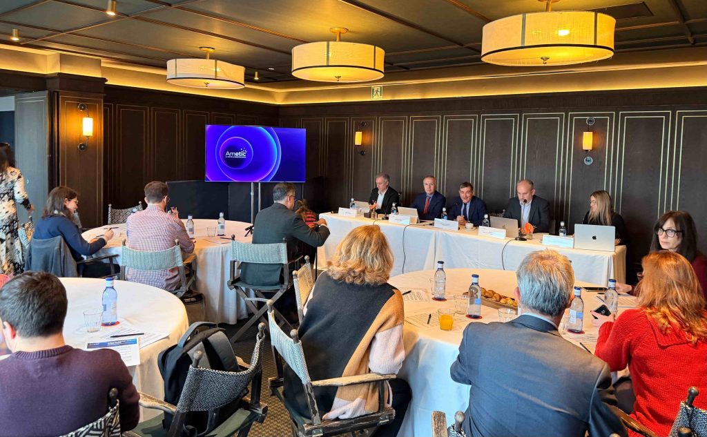El acto estuvo presidido por Francisco Hortigüela, presidente de AMETIC; Celestino García, director general; Jorge Morillo, presidente de la Comisión de Agenda y Estrategia Digital; y Antonio Cimorra, director de Comisiones de la asociación.